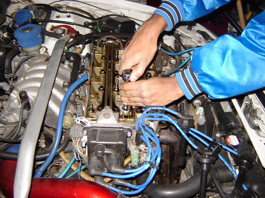 6) Proceed to the car and remove your spark plug cover, spark plug wires and valve cover.