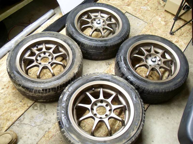 - jdm bronze rims, 15inch, 4x100 and 4x114, looks great, no curb rash chip or anything wats so ever, rims are perfect condition ,Dunloptires, 2 tires are about 50% tread left, other 2 are 30-40% with camber wear, asking 450$ Obo rims just need a good wash! and yes i have all 4 center caps ! Asking Price: - $450 obo Location: - hamilton Contact: - call 905 923 3364 anytime Attachment 13612 |