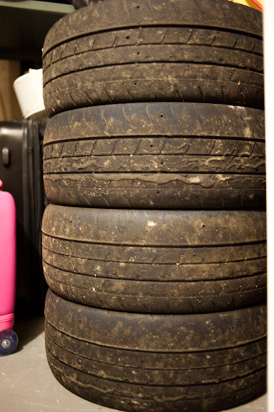 -total of 4 track days on the tires. I just did 2 lapping days last year with NO problems, no cracks, chunks coming off etc.