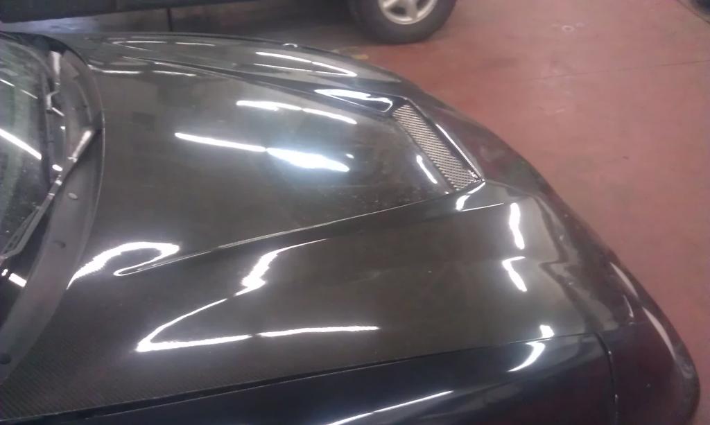 - Carbon Fiber hood is separating at the front, and has a crack in the center on the inside skeleton (both damage areas are repairable)