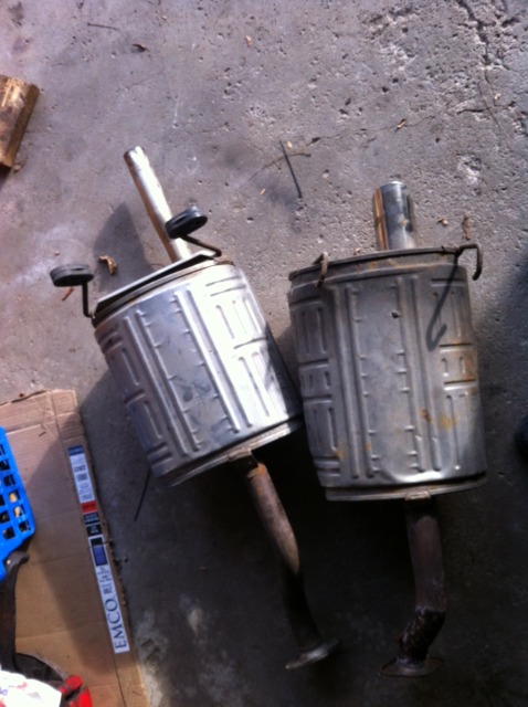 2. OEM Acura GSR muffler modified to fit a 1992-1995 civc (eg). A little rough but usable.