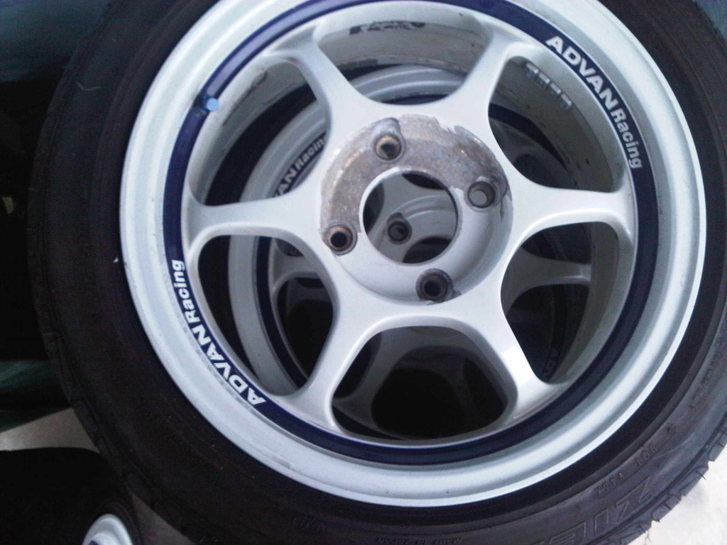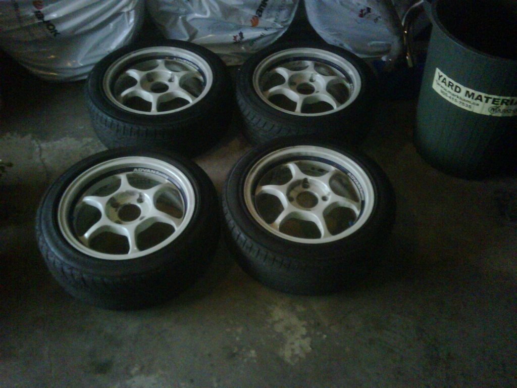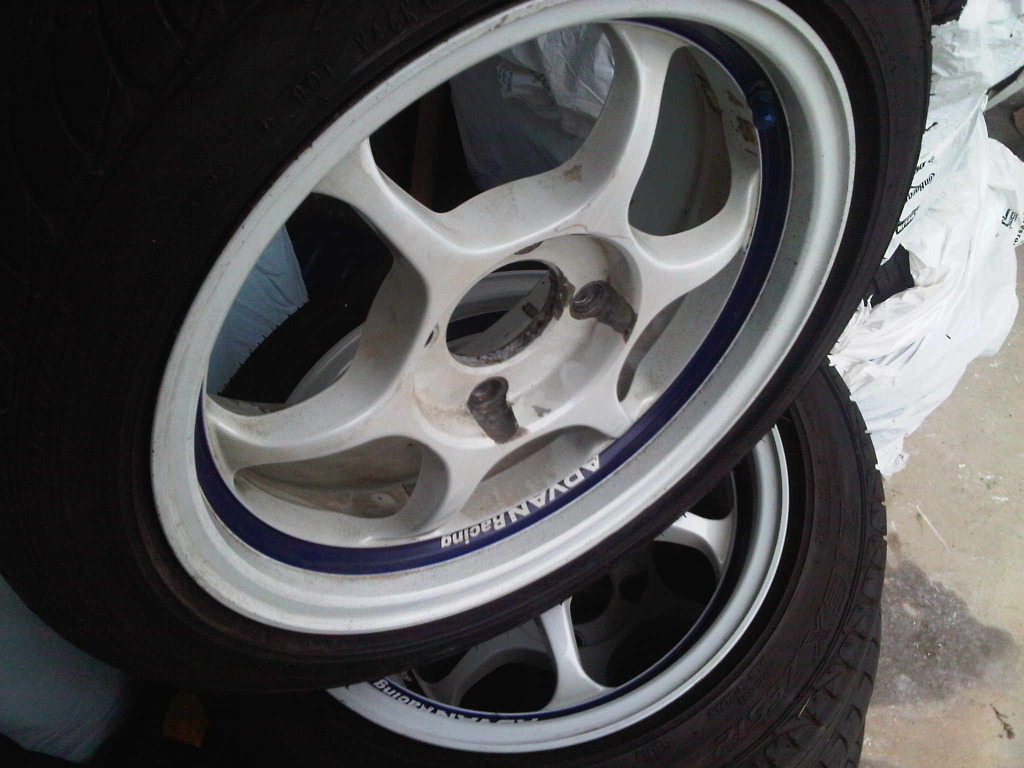 The wheels in question are restored Advan RG'1s. If anyone remembers these, they were on TehFuzzmans Integra. They've since been slutting around going to different cars and now they're in my hands.