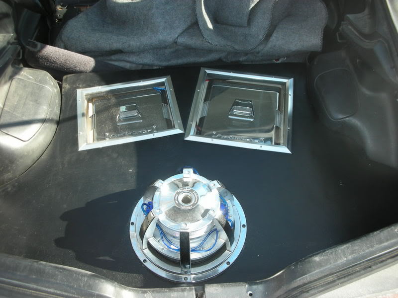 I built the box myself and it is constructed very well and solid. Anyone who has heard the system can agree that it plays loud and sounds good. It hit 134.db (not bad for one sub) The box is a Ported 2.5 cubic ft box in the spare tire well (must remove spare tire). This holds a 12'' sub 2 Plexi glass amp windows for Matching Audiobahn Subs Equipment: 1 Rockford Fostage P3 Dual 4 ohm sub 1 Audiobahn A8000T Mono Block (800rms at 2ohms) 1 Audiobahn A4004T 4 channel amp (50rms x4 @ 4 ohms) Attachment 18852 sub in picture was replaced with the rockford p3 (Trunk was dusty at time of picture. The system is wrapped in a good quality vinyl and fits very well in the trunk, no gaps around the edges and does not move around Asking 700 OBO including ALL equipment and sub enclosure with amp rack If you dont want the sub its 600 OBO Contact Alex 705 241 5809 or msn born_2_board69@hotmail.com more pics available upon request |