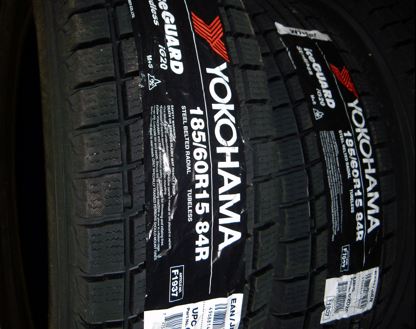 FOUR -185/60R15 84R Yokohama steel belted Radial wintertires, Ice guard studless (BRAND NEW) stickers are still on them ($400)