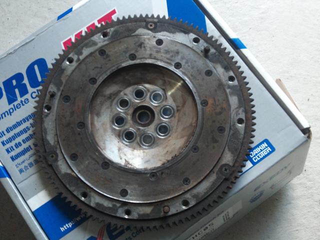 Aftermarket flywheel, unknown make, unknown KM, used on both short and long spline cable tranny's, look like a Fidanza flywheel $100obo