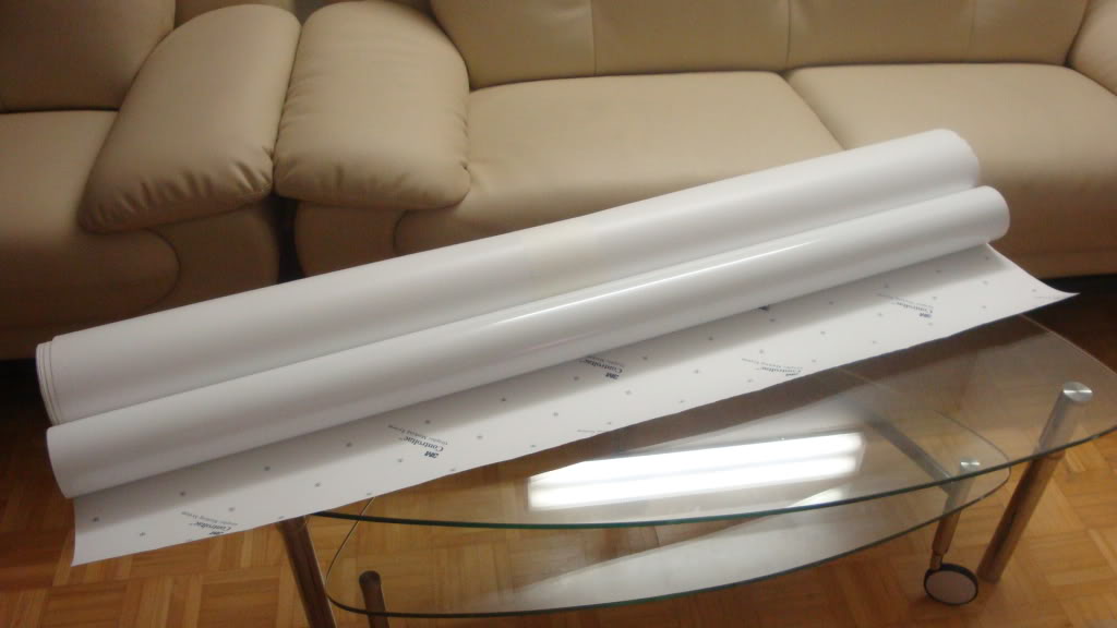 3M Gloss black vinyl with comply/easy apply feature. Ideal for roof and hood applications. $40 for a sheet 4'x8'(clearance price), will throw in a 3M squeegee if you want to DIY, installation available.