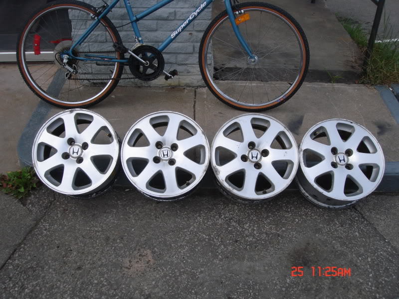 Hey guys I have a set of SIR rims. I used them for 2 months last year. I no longer own a honda. These work on all honda Civic's and Integras. These are a 15 inch rim, and the bolt pattern is 4x100