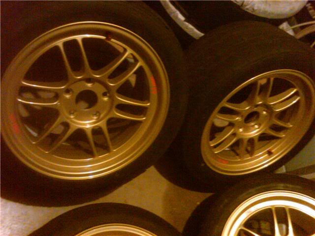 SIZE: 18 x 8 +53 F; 18 x 9.5 +53 R BOLT PATTERN: 5 x 114.3 COLOUR: GLOSS BLACK WITH POLISHED LIP Tires are Falken FK452's. Front is 225-40-18 with 75-80% and rear is 255-35-18 which are pretty much corded. Condition is very good 9/10. no scratches or curb rash. Just one of the stickers is starting to peel a tiny bit. $2000 Attachment 11977 Attachment 11978 Attachment 11979 Attachment 11980 Attachment 11981 Attachment 11982 ------------------------------------------------------------------------------------------------------------------------ ENKEI RPF1 - BRAND SPANKING NEW! SIZE: 17 x 9 +45 BOLT PATTERN: 5 x 114.5 COLOUR: GOLD $1600 with the R-Compounds $1400 rims alone These wheels have never been used. I had the tires mounted but the rims didnt clear my calipers so I never put them on. Tires are 255-40-17 Toyo RA1's with 4 vertical groves still visible so they are at their sweet spot. Attachment 11983 Attachment 11984 Attachment 11985 Attachment 11986 Attachment 11987 contact me at: erickstamaria(at)gmail(dot)com |