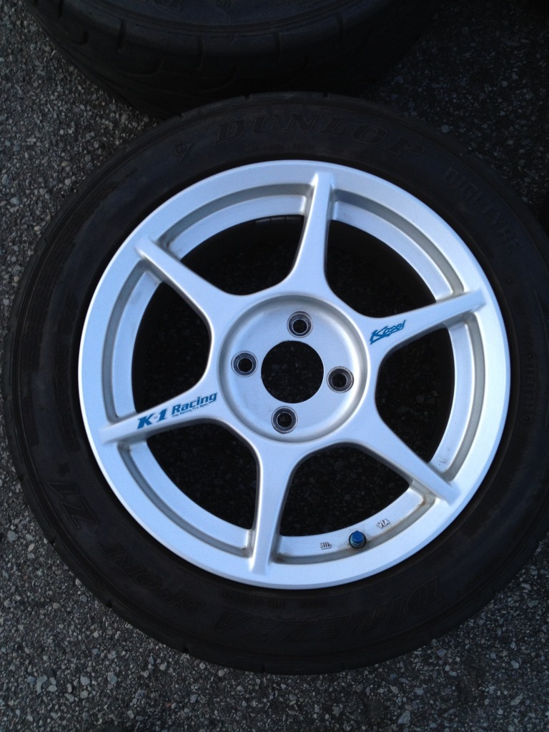For sale i have a Mint set of kosei K1 rims 15x7 with new dunlop star spec Z1 tires in 205/50/15 tire rims and tires are mint i have not even used the tires yet