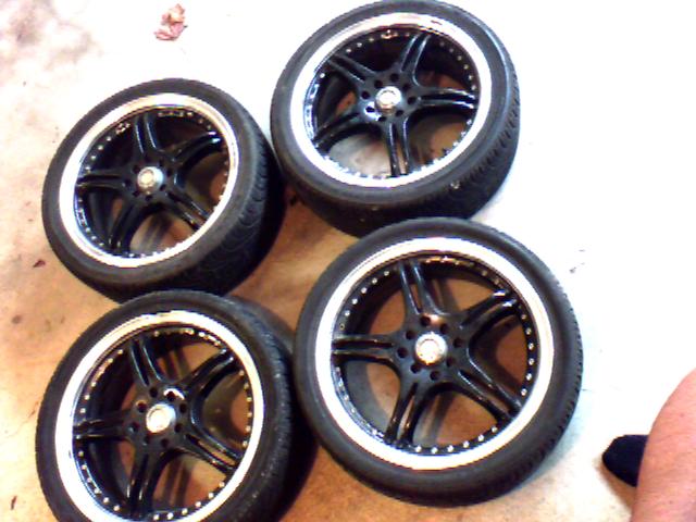 i had rims back last summer on my integra. They were on for 1 summer and then i busted 1 rim .. witch still works but leaks air through the dent and the other rim is pretty messed up from the inside (not driveable). So basically its 4 mint tires with about 90% tred and two mint rms. All the rims re on right now any i dont have the time to part the two so im looking to sell everything together