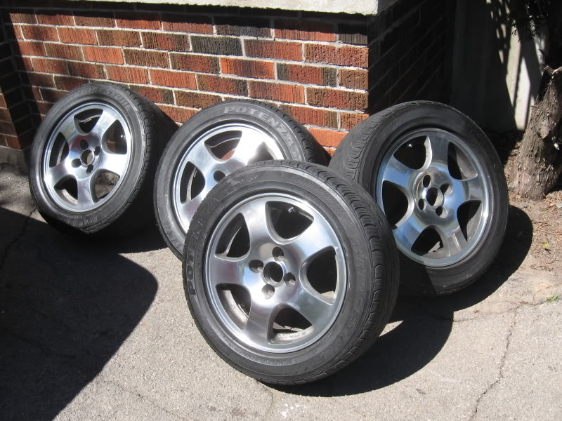 here are some pics... any questions - please address them beforehand and not get to the meeting spot to not be interested! here are the pics! Attachment 20703 Attachment 20704 here i am pointing out that the insides are not polished - only the face! Attachment 20705 the set of 4 tires are mounted on Bridgestone Potenza's 205-55-15's if your car is slammed it WILL RUB, only when turning slow or going up curbs! tires are probably good for one more season. price is $500 FIRM please email me lao4lyfe@hotmail.com or PM me location is Hamilton Mark |
