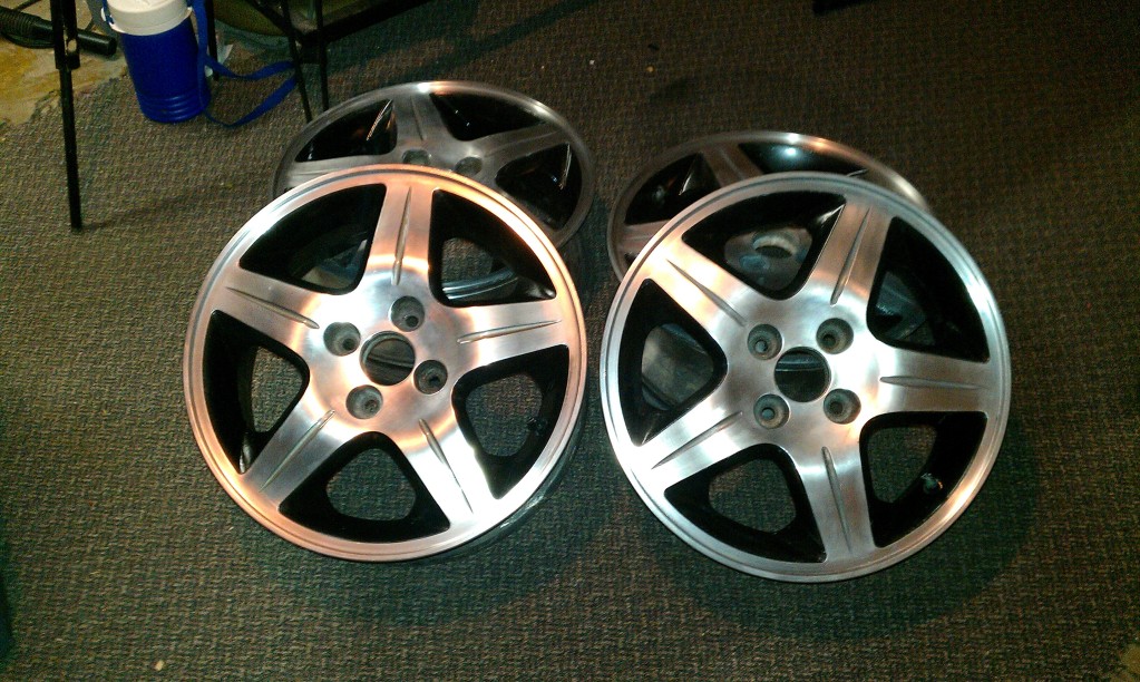 Set of 15" Acura EL rims, refinished n repainted and polished. Mounted with a set of Goodyear Integrity rubbers(205/70/15) rims $200 rubbers $200 Both $350. Located in Owen Sound,
