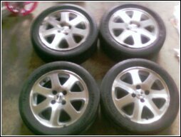 Hello folks! 1. I have a set of Sir rims+tires 4sale. 1 tire has camber the other 3 r at 70% tread. Asking $450.00obo