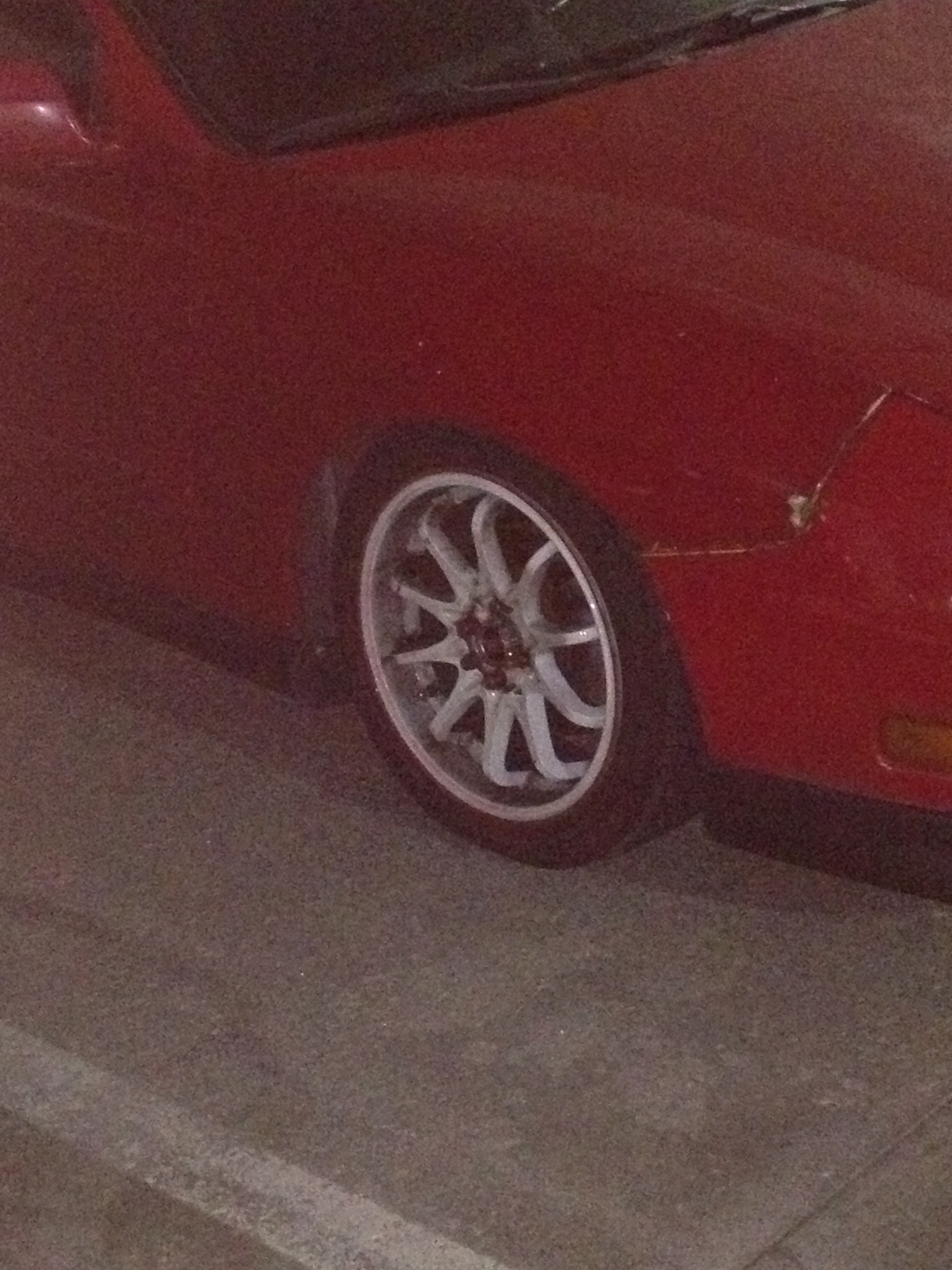I'm selling my set of 16" GP rims. They're white rims with a red lip. The 2 rear tires are good. One of the front popped and the other front tire seems fine. The rims are in good condition. The front two rims just have brake dust on them so just needs a wash. I'm selling them because I got a brand new set of rims for next spring and want these gone as I have no use for them. Throw some offers, please dont low ball! My number is 647-668-6153