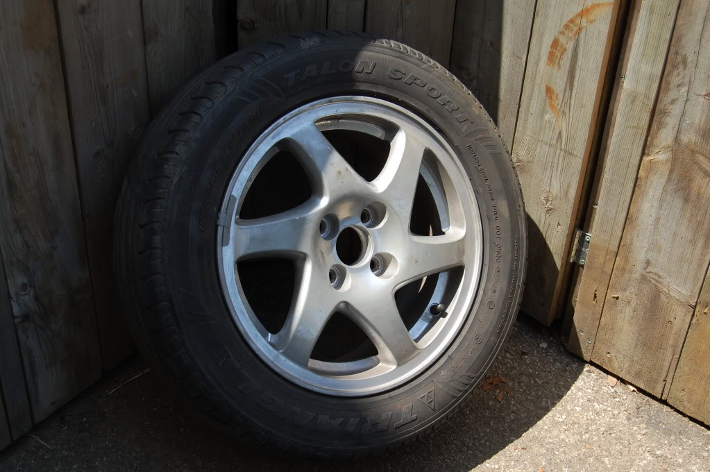 I have one for $70 with a good tire. The tire is a 195/60R15. Here's a picture of the rim and tire.