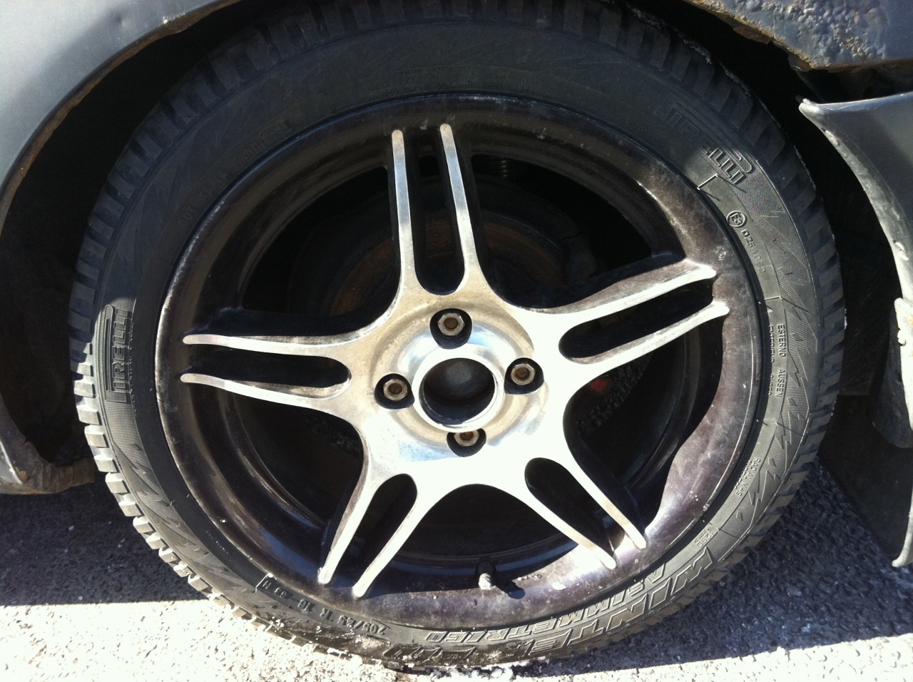 Has to be 16-17inch nothing smaller nothing bigger. I do have a set of universal 5 bolt 17 inch bronze rims for trade but also have cash for it. Let me know what you have and if it looks nice I'll take them off you.
