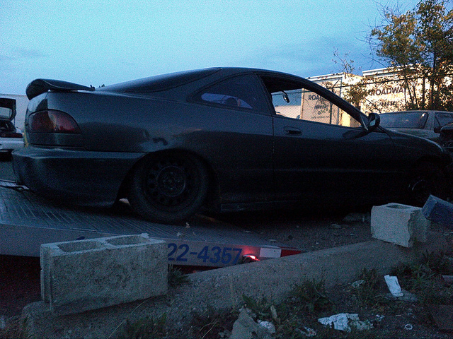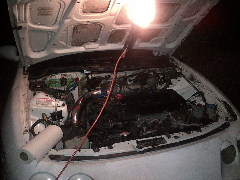 Went to drive out to ottawa on a nice sat. afternoon, figured I needed to break in the car just a little more. The car was running great, so I was like the drive would be fine. I was making great time, and aside from a slight hesitation or what I thought was fuel cut at full throttle she drove like a dream, until lady luck decided to screw me, lets just say I lost the crank pulley bolt somewhere along the 401, about an hr outside of ottawa stuck in traffic behind an accident, the car dies, and won't start.