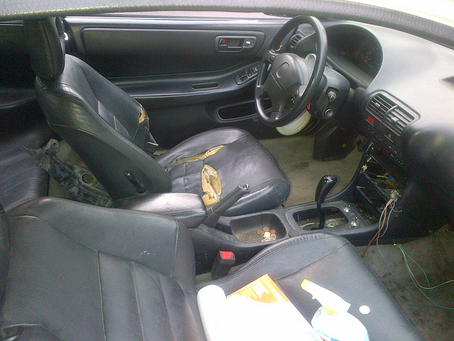 Picked up a carbon fiberhood that was cracked and needed to be repaired, rims that need tires, and some shots of the re-appolstered interior that I did.