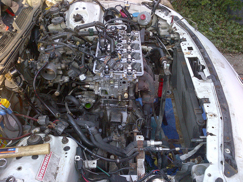 When I went to install the crank pulley, I realized that I didn't get the crank pulley bolt back, or the crank pulley timing belt washer, was also missing one flywheel bolt, and had a defective yonaka clutch disk(but I knew about this when I pulled my last motor)