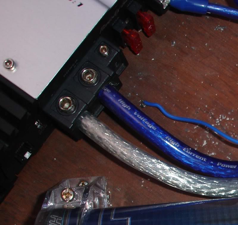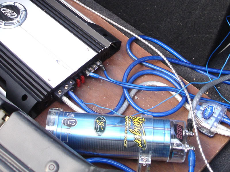 you are right slvr_dc2, im getting power once in a while to the capacitor but not the sub. The wiring is done using 8 gauge, but there is a really thin wire that looks like it used to be the remote wire which is replace by a high voltage wire now.