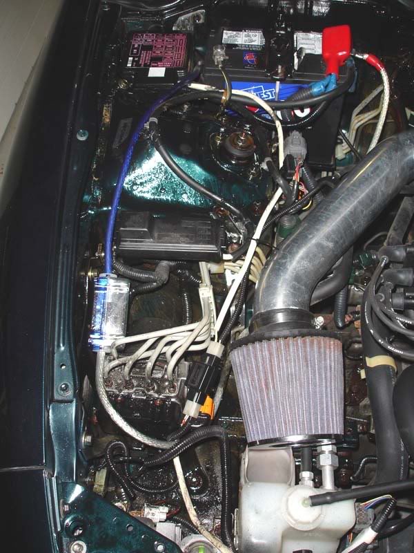change the fuse under the hood, even if it looks fine. is a cylinder style fuse a.k.a AGU fuse? i've had one pop on me but when i pulled it out of the holder it looked fine. also check the fuse holder and bettery terminal. check your amp fuse,remote wire. use a tester and see if your getting power to the other end of the power wire under your hood where the fuse is for your system. the see where the fuse is here in this pic (http://triumph.daveola.com/Album/Stereo/dsc02019.jpg) but don't know for sure where mine is, or at least the amplifire one... here are some pics that i took which might make it easier for you guys to show me exactly where to look. Attachment 18365 Attachment 18366 Attachment 18367 |