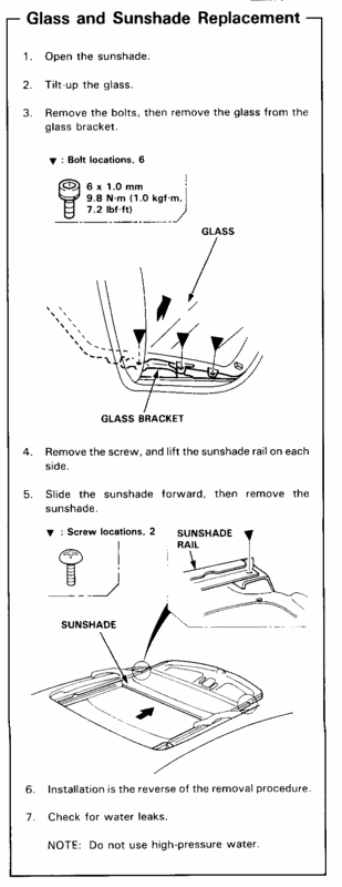 hey, i know how to drop the whole sunroof off of my car but i am wondering if anyone knows how the sliding piece that covers the sunroof window comes out from the unit..i need to take it out today so please let me know..thanks