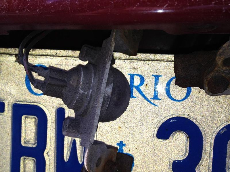 Lol I've never laughed so hard in my life. Something to do with the air bags lol dude theyre your license plate bulbs hense the bulbs inside of the hens when you turn your light on they light up lol. Go to junk yard pick up new bracket. I would do this ASAP before your airbag goes off in your face lol. Sorry I sound like an *** it's just too funny