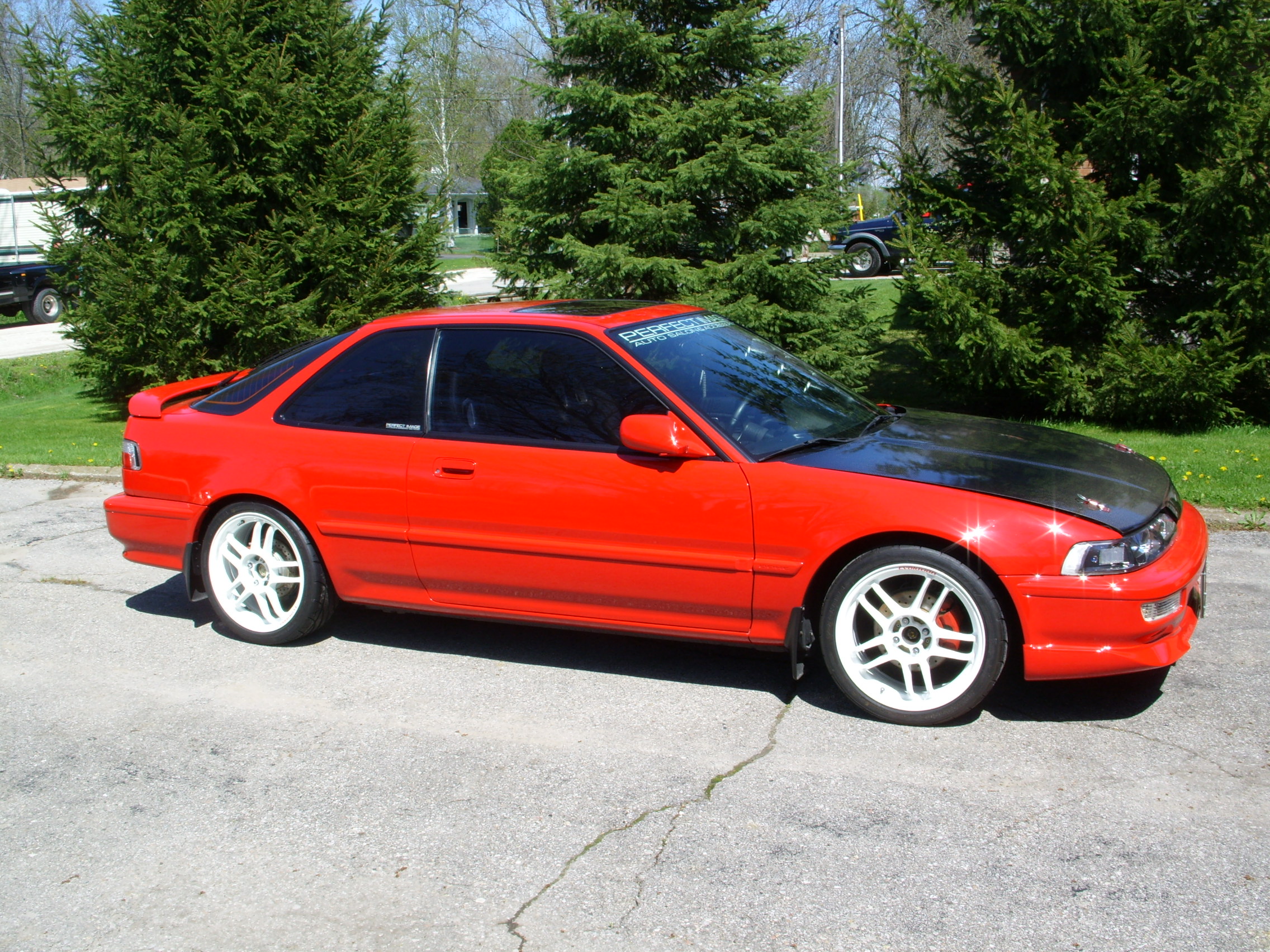 Fiber Images carbon hood, sparco hood pins, black chrome 1 pc headlights w/ piaa lighting, clear signals, wings west front lip, grille craft grill, red and clear TYC tail lights