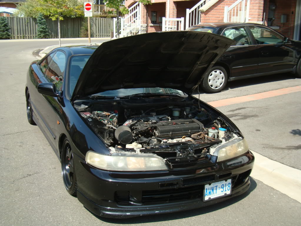 I'm selling a 1997 Acura Integra special edition 2 door with a 2001 JDM type-r front end conversion. The car is 5 speed manual and has about 223,000 kms on the body and comes with a 2000 JDM B20 motor with approx. 75-80 k on the new motor just replaced. The interior is black on black, has power windows, and mirrors, and the car is riding on PIC one-piece 32 way adjustable race coilover suspension, 16" Rota Slipstreams with 205/40R/16 tires, carbon fibre hood, rare jdm front bumper, Injen short-ram intake, stock muffler/exhaust, and an AM/FM cd player. The body and interior are very very clean and the car overall is in excellent condition and drives very good. I'm asking $6000 obo.