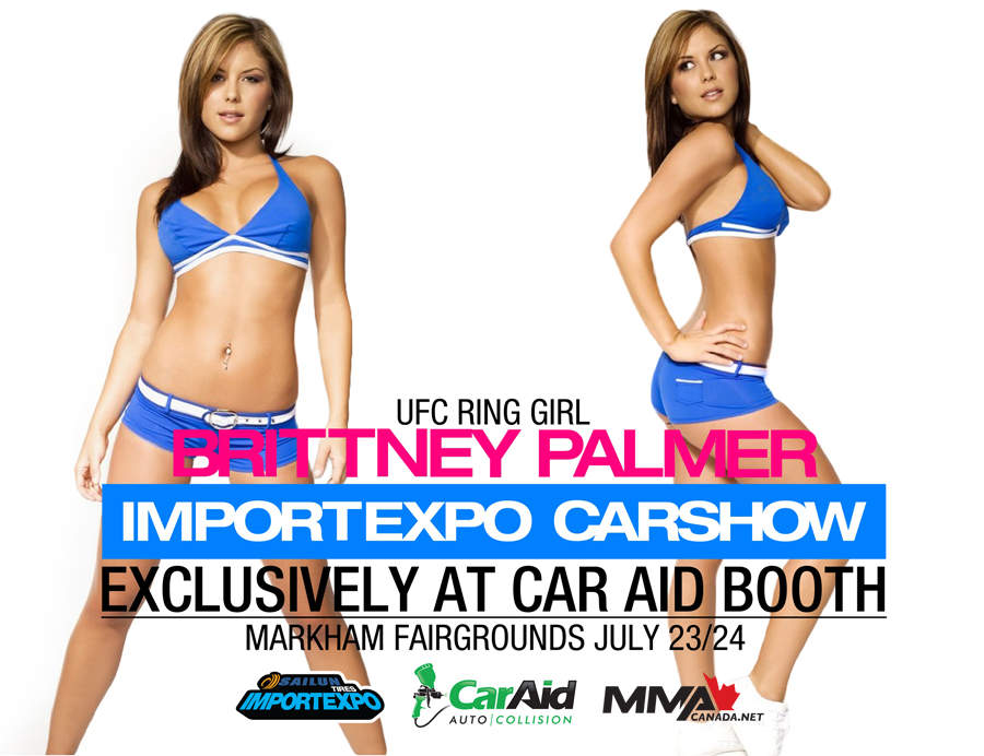 Come check out UFC ring girl Brittney Palmer exclusively at IMPORTEXPO in the Car Aid Auto Collision booth.
