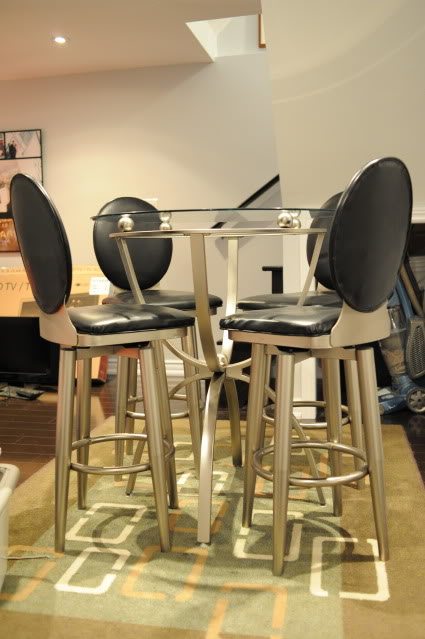 -tempered glass table top -very nice bar height style dining table and 4 chairs -all chairs are very heavy duty and can swivel Dimensions are as followed -table top diameter 35 inches -table height 41 inches -chair seat height 29 inches Please call/text me at 416-838-2483 for any questions. NO PM's or EMAILS. Located in Markham by Mccowan and Highway 7 $150 OBO. Paid a lot more for this set. Very nice quality Thanks for looking. Chris http://i6.photobucket.com/albums/y24...t/700_7398.jpg Attachment 8713 |