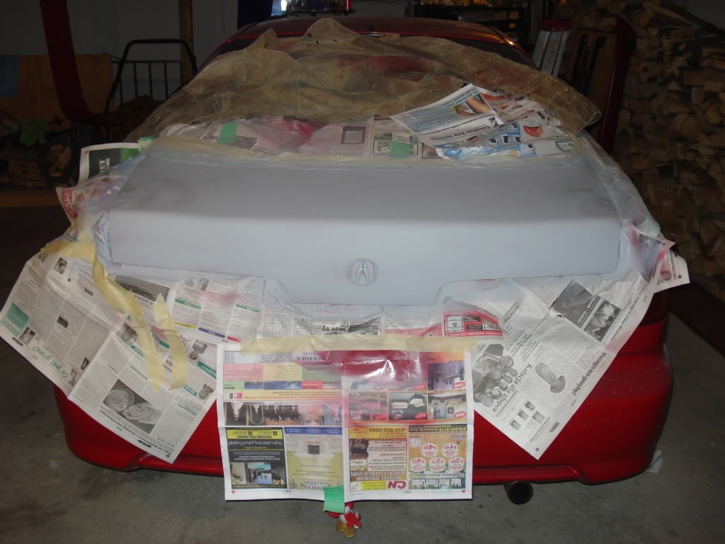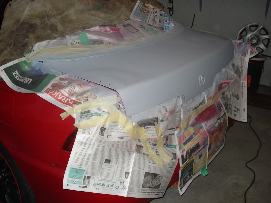 Here are the pics of shaving the spolier holes since previous owner had them wrong off by 1/4" and redrilled new ones for the Type R wing.