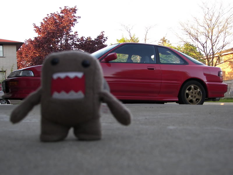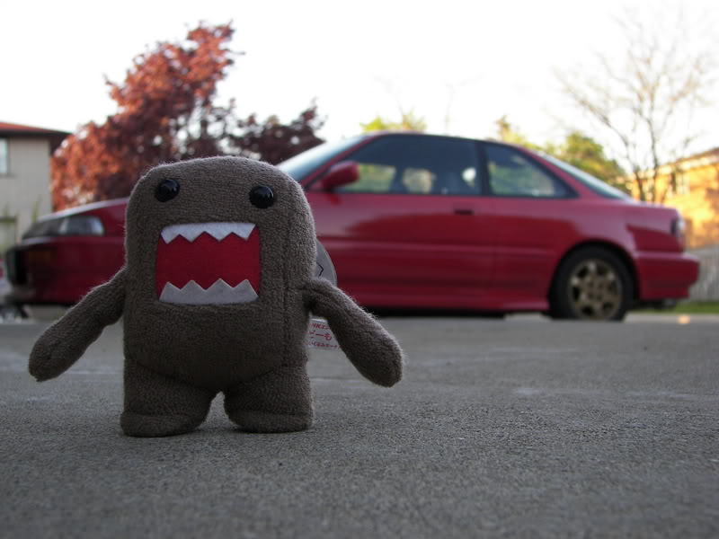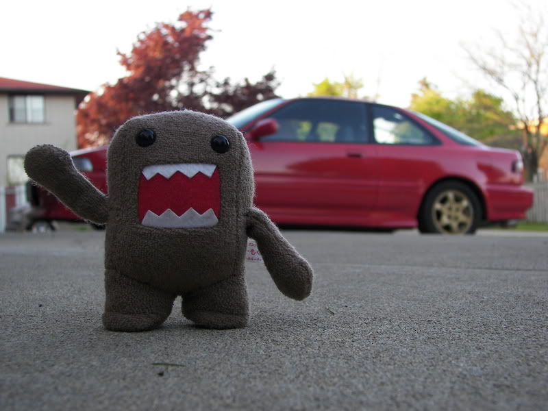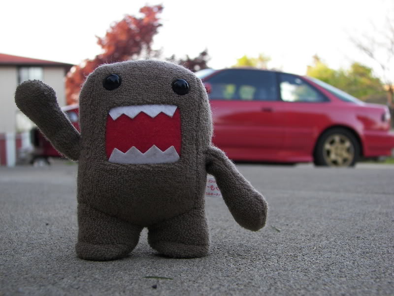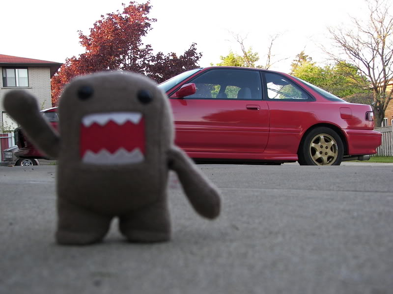 notice how domo is blocking the front wheel. i put him there to cover that rim. the tire went bad on the gold webbie so i put on a pair of swirlies in the front untill i get new tires and an alignment. i'd have way more pics of the car if all the rims matched :( |