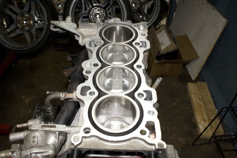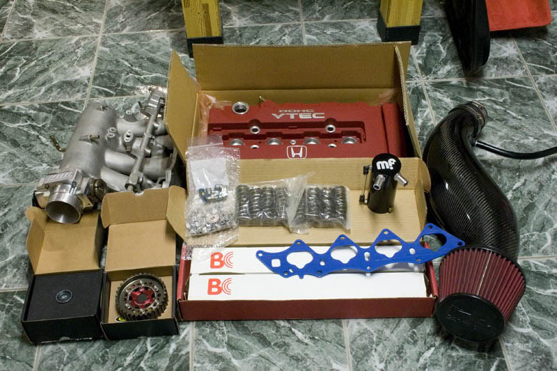 it was long overdue anyways, there's more progress on the motor. i was dreading having to assemble the bottom end and the fact that my schedule is totally opposite to Dave's at Addicted Performance, there's was no way anything could've gotten done. so I called up zman. he checked all the clearances on it (which he said came out great), trimmed and clocked the rings, inserted the rods/pistons, crank and main girdle and torqued it all down. i added the oil seperator box, water pipe and tstat housing. before i go any further i need to get a bottom end gasket kit and check the clearances on my oil pump. once that done, the oil pump, pickup, windage try and pan can go on. on to the pics cylinders 2 & 3 at TDC Attachment 18171 Crank rods and girdle all buttoned down Attachment 18172 block shot (featuring Born2Board's Block in the background Attachment 18173 top view Attachment 18174 in the meantime i've also gathered a collection of parts, mostly for the top end. still gotta get the machine work done to the head and get a few more parts. not pictured: Comp clutch flywheel and DSM 390cc grey top injectors Attachment 18175 since progress is picking up, the next update won't be 8 months later like this one lol i'm really looking forward to seeing what these Brian Crower cams will put out. after much searching, i haven't found anything on H-T about them for the B-series, so once it's dyno'd i'll certainly post the chart there too. |