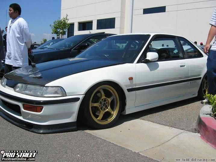 i got the jdm thin side moldings too and im gonna be riding on work emotion CR in bronze. with a subura sti world rally 2006 paintjob same hood too cf. plus a 92 b17a1 1rst gen gsr motor. ill have the car DONE soon i hope. |