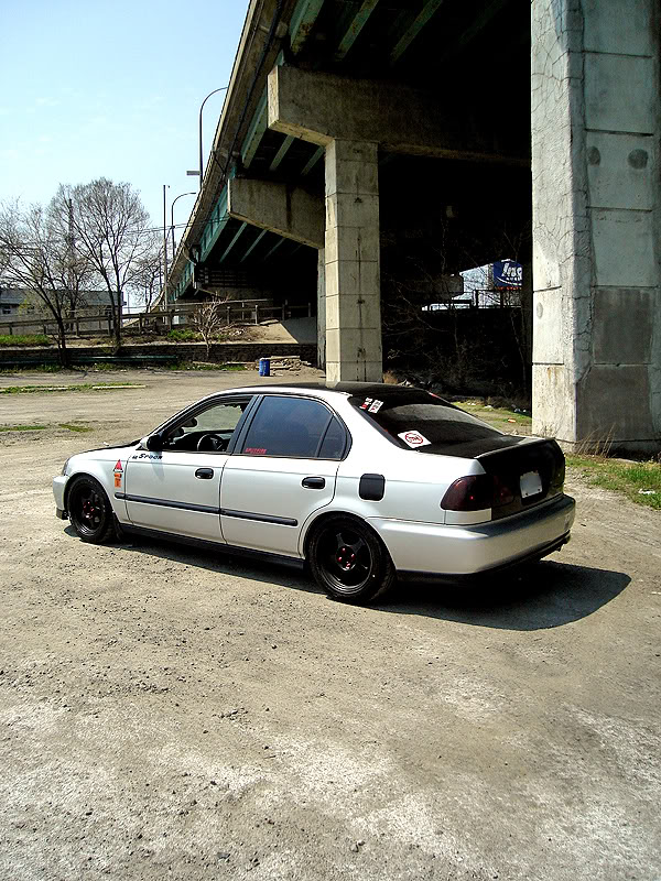 needs the jdm bumpers and 2 get rid of the dark tails.... cleam ride though, ek sedans are sexy when done properly