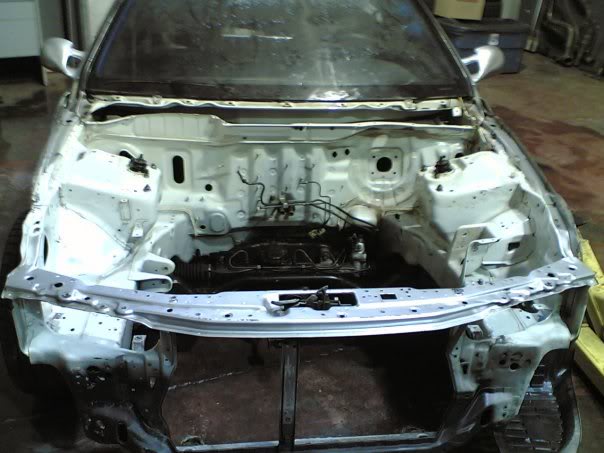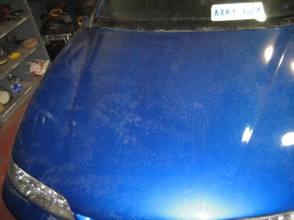 here are some before and after shots.. the car isnt totally done yet. and its very dirty from being pushed in and out of the shop.. the cage isnt in yet and the interior isnt painted flat black... after the motor goes in the outside is going to get wet sanded again and buffed and polished. :D