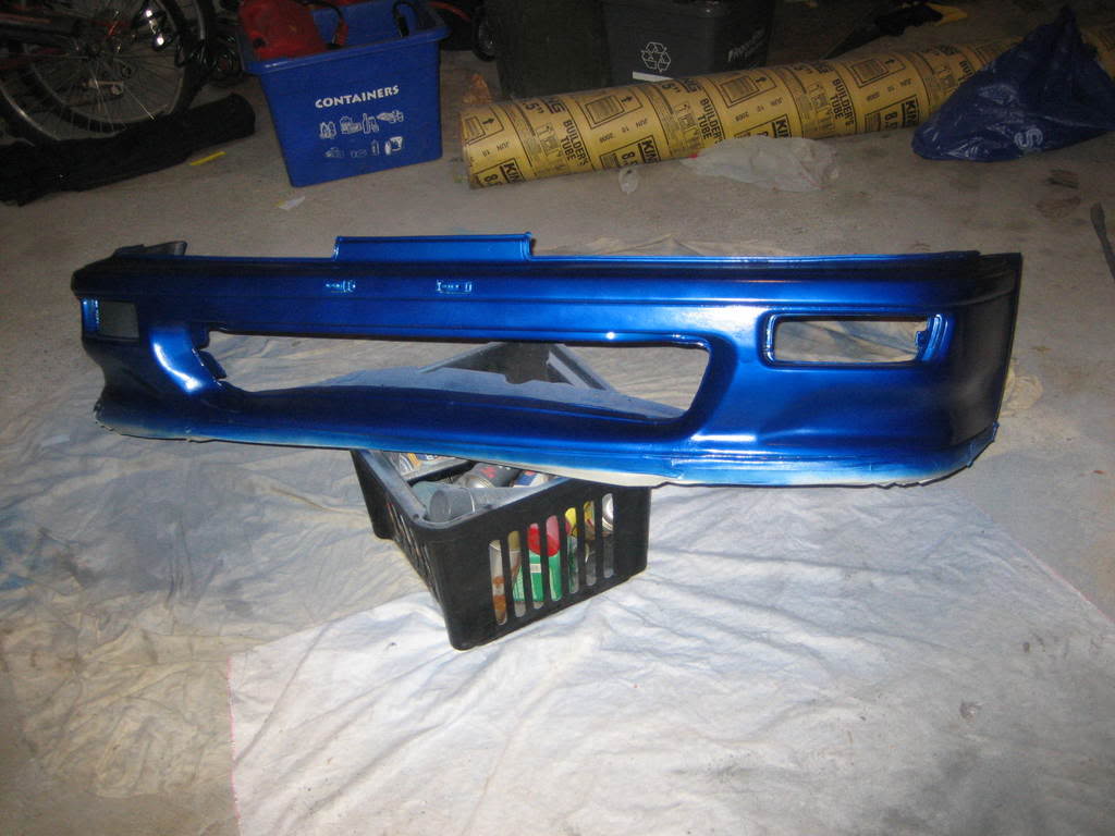 Ye I painted the bumper in my garage on thursday evening, i let it dry a bit, and did the blue next day(friday). It wasnt hard to paint, it was just a pain sanding out the plastic, i hate wet sanding, i couldnt get all the bumps out, but its a lot better than when I got the bumper. It was black when i got it. And D1Kingz im painting the valve cover the colour.... just wait and see :P Cant spoil the surprise lol. I'll update the thread once i complete it and have it mounted. |