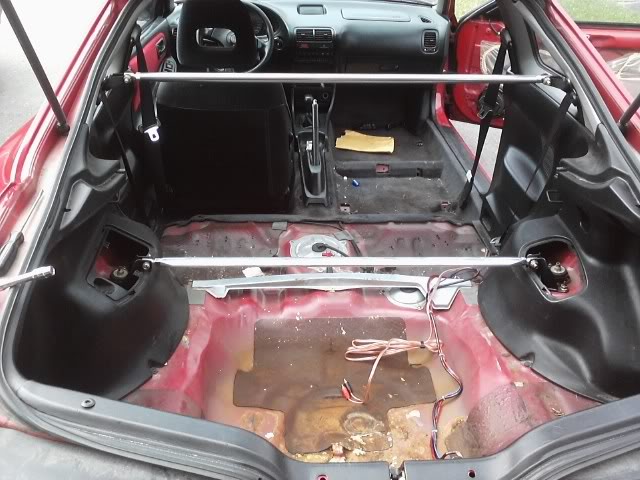 It came with the following Mods/Upgrades: B20 MOTOR B16 TRANNY FRONT, REAR, C PILLAR SWAY BARS NEW OEM EXHAUST TOKICO BLUES TEIN SPRINGS (SITS PRETTY LOW) SPOON REPLICA MIRRORS JDM TYPE R STEERING WHEEL CROSS DRILLED ROTORS 15" PIAA Black Gloss 5 Spoke Wheels I have been inquiring alot on this forum as what I should do, what I shouldn't do, and what to do if I want "XXX" amount of power. This is my 3rd Integra, but never went all the way with one, just the normal stuff. My previous was a 1996 GSR, and a 1994 DC4 H22. All the work was done at shops, like all my other cars. This work that has gone into this Integra has been solely done in my garage. Here is a list of what has been done so far: GSR LEATHERS (Front & Rear) Full 98+ Connversion (Front & Rear) Tune Up (Oil Change, TB & Water Pump, NGK Platinum Spark Plugs, Taylor Wires) AC Unit Removed Oil Change Transmission Flush Re Manufactured Brake Calipers (Sprayed Red) Fuzion HR1 Tires 205/60R/15 New Brakes Godspeed Gold Lugs Front & Rear Lower Stabilizer Bars Megan LCA's Rear Trunk Sprayed down all black Leather Door Panels w/Red Fabricated Insets I have pictures of most of this and will upload when I get a chance. Future Mods: Bodywork over Winter (maybe sooner) Remove Power Steering ABS Battery & Fuse Box Relocation Mild Wire Tuck SS Fuel Lines/Brake Lines SS Clutch Cable Powercoat Bottom End/Valve Cover Full Bolt Ons (Intake is on the way!) Possible VTEC Conversion If anyone has any suggestions, please share!! Thanks. |