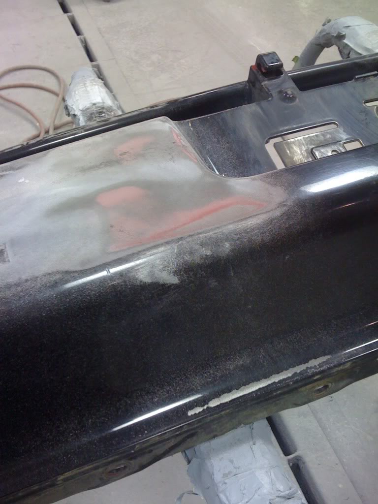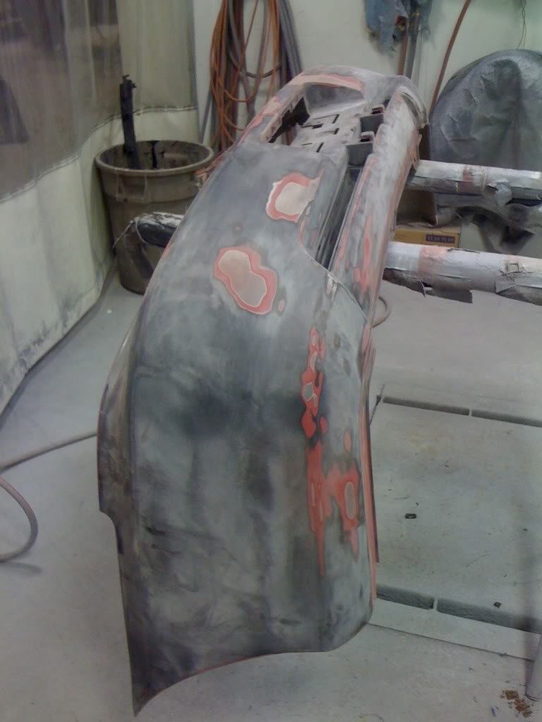Front bumper ready for priming: Attachment 11900 Rear bumper before sanding: Attachment 11901 Rear bumper after sanding, and the bumper was red before: Attachment 11902 Attachment 11903 Attachment 11904 Passenger fender getting fixed, stupid dent and rust: Attachment 11905 |