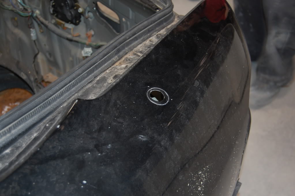 So today the body guy got the 1/4 panel hole fixed with new metal, and got is all straight, plus he filled in the antenna hole, and the other holes in the trunk lip from a wiring for the factory wing like. Here's a picture of just the 1/4 panel still being worked on.