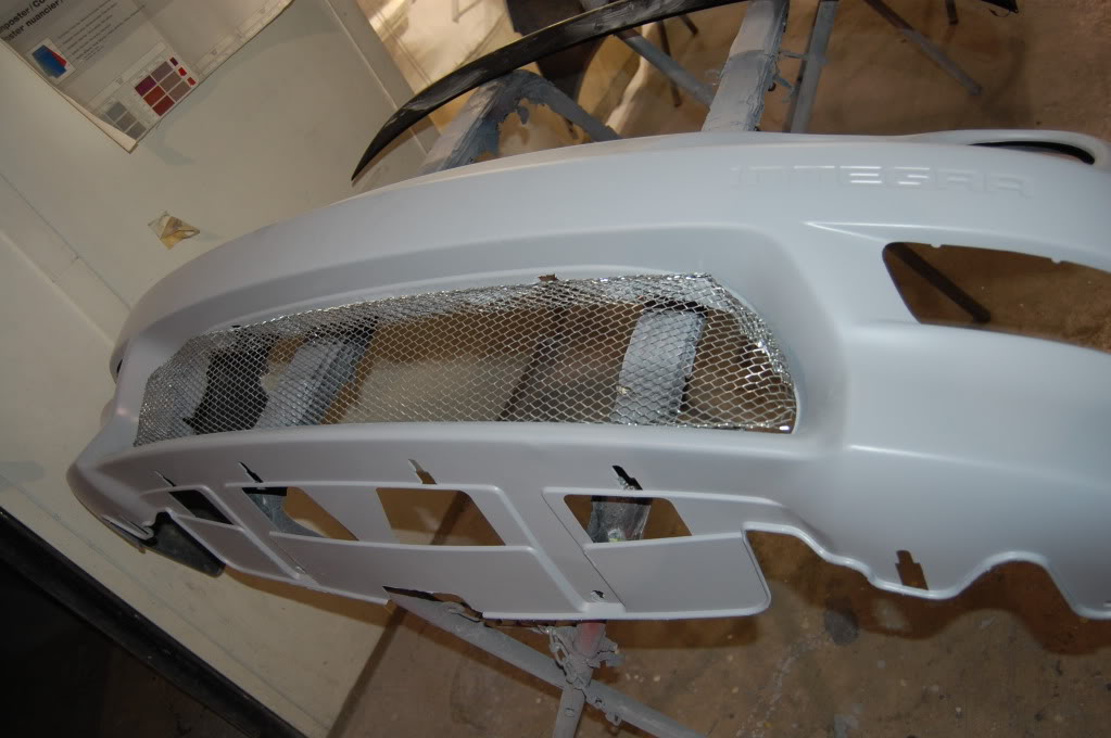 personally i wouldn't bother with the mesh in the bumper, not like that at least. i tried the same thing with my bumper and no matter what i tried i couldn't get it to look as good as i wanted. i just ended up scrapping the idea and kept it all open.