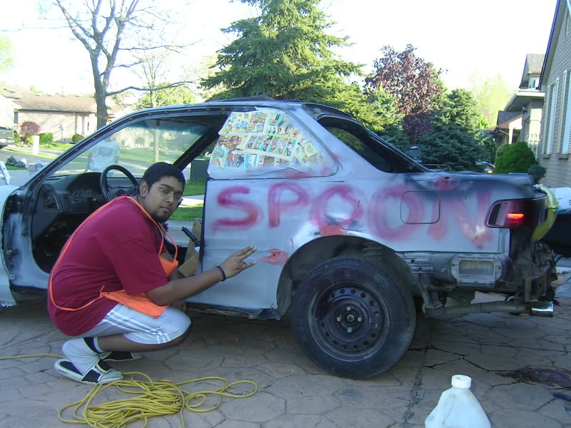 Its a 1991 Acura Integra LS And so she begins, all molested and raped. Attachment 16480 Attachment 16481 I put on the paseo wheels, because it was even more of a truck before with its 17" Diablo wannabe rims. Sexxed up a little bit Attachment 16482 Attachment 16483 And then we started taking out her insides.:headbang: Attachment 16484 The temporary sunroof cap Attachment 16485 Attachment 16486 The previous owner had some pretty intense steel side skirts on the car, so off they came, Attachment 16487 And now, some more ripping apart:w00t: Out comes the antenna Attachment 16488 And then the taillights Attachment 16489 And now all interior is removed Attachment 16490 Decided to go for a temporary custom exhaust:rockon: http://i118.photobucket.com/albums/o...relocation.jpg Off comes hood and headlight Attachment 16491 Trunk filler piece is now off Attachment 16492 Both doors off :yeah: Attachment 16493 Old hatch off :beer: Attachment 16494 Left fender off Attachment 16495 Gay engine bay:giggle: Attachment 16496 Whole rear off (Rust Mania) Attachment 16497 Aftermarket quarter panel Attachment 16498 Cleaned up her rear end a bit. Attachment 16499 Then we did the axles https://www.torontointegras.ca/forum...ad.php?t=33042 Now the whole front end is off Attachment 16500 How she currently sleeps in my garage Attachment 16501 Attachment 16502 Attachment 16503 Sleeping at night Attachment 16504 Treated her to some rust removal and protection :D Attachment 16505 Will update often :D Rear end rust removal and treatment - Needs some patch welding, picking up a Lincoln Electric Feed Welder this week Attachment 16506 Now body work finished on the driverside quarter panel, which is where most of the work is needed to be done. Attachment 16507 Attachment 16508 Attachment 16509 Attachment 16510 Attachment 16511 |