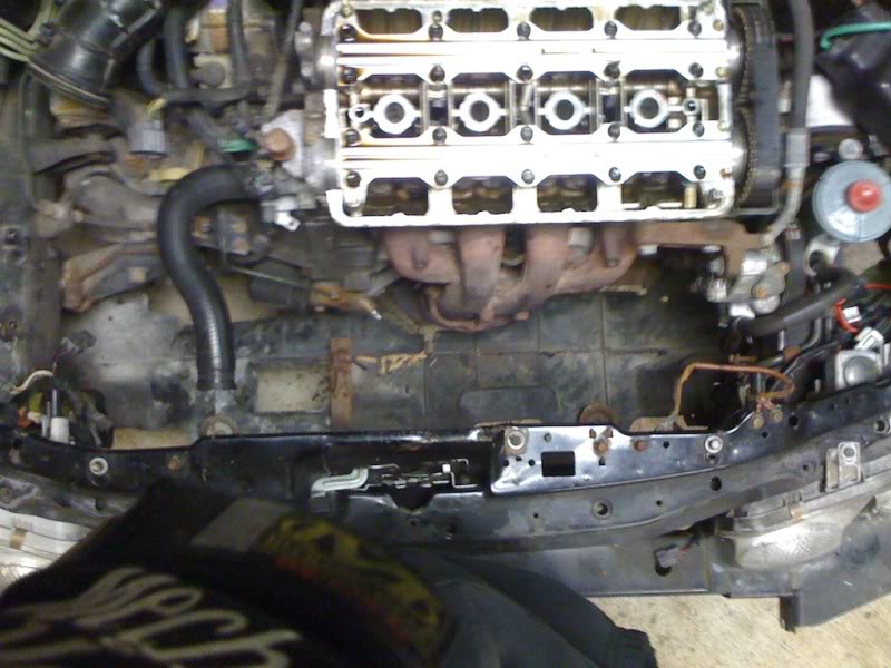 well its been a little while since i've posted progress/pics. I was sick there and didn't work on my car for like a week (which would have been 2 nights..) So i've been up here and there...and for the most part the car is back together. Next time i'm up, just gotta properly set timing, and then wait for my valve cover to get back from powder coating so I can install it and start my car :)...make sure everything is proper, and then pull off the tranny/clutch see if I can find my problem with that.