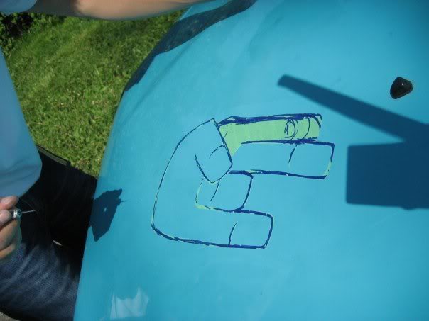So with help from my friends we took a couple hours to paint "steve" on the weekend. i think it turned out really good especially the shocker on the hood. hahaha