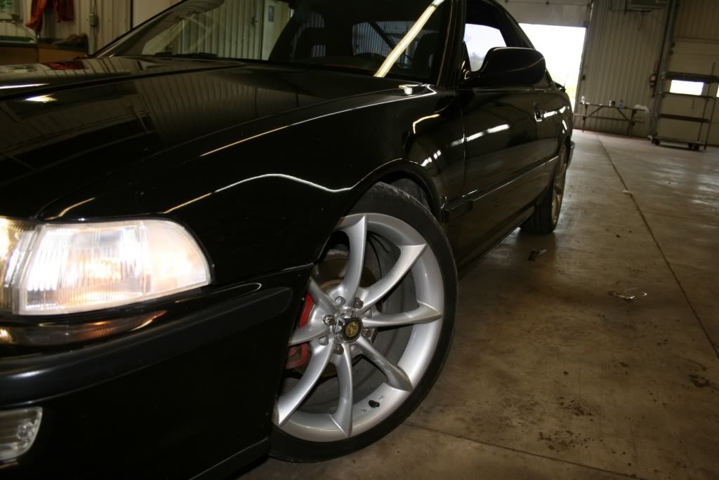 heres mine until lip kit goes on i got goldline springs 2.5 drop with tockio blues brand new been using them for like 3 days now. full poly eurothayne bushing kit dam does it make a big difference on how the car rides. |