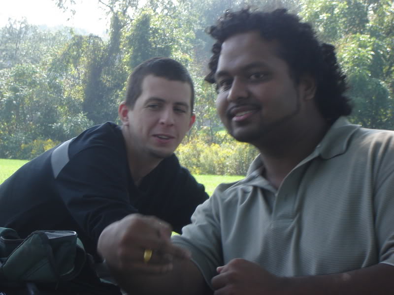 Hanging out waiting for Mark and Fuzzy to bring back the food:
