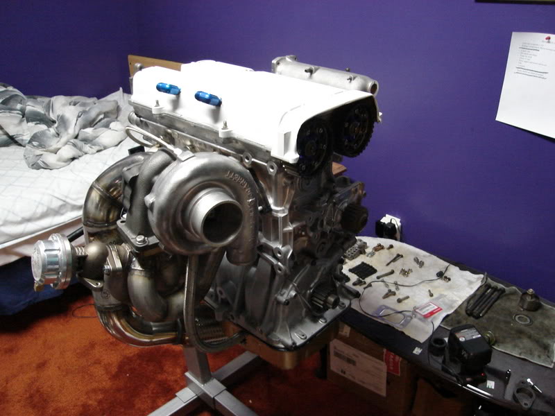 got some new parts in today, i think it's safe to say that the "budget build" went out the window..haha.. picked up a tunertoys stainless steel oil line kit, and a real Greddy type-RS blow off valve :yeah: my oil feed setup, bought the sammish oil filter adapter and then connected the feed from there, the other two ports on the adapter are going to be used for the oil pressure and oil temp gagues. feed line: Attachment 21143 kit: Attachment 21144 here's the return line that goes back into the oil pan: Attachment 21145 this is probably one of the nicest peices i've gotten for this build, the greddy type-RS blow off valve (it's gonna be LOUAD) http://img.photobucket.com/albums/v1...cture003-3.jpg Attachment 21146 also with the help of trenell, we got the bottom end all finished up, siliconed up the oil pump and rear main seal and serviced the oilpump too. it's pretty much ready to go! |